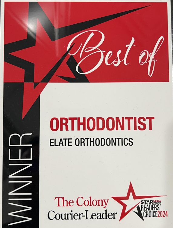 Elate Orthodontics awarded 2024 Readers’ Choice Best Orthodontist in The Colony TX by Star Local Media serving Frisco Prosper Little Elm Carrollton and Lewisville